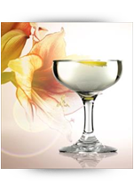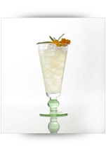 and top off with Champagne. Carnish with a kumquat floret and orange zest. And enjoy with your